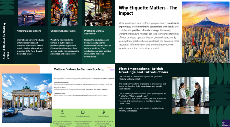 Contains all Products available and includes access to Material Requests which allows you to customize your experience. This is perfect for businesses who frequently require travel to foreign countries. Don't let naiveite ruin a business deal or pitch to foreign investors.